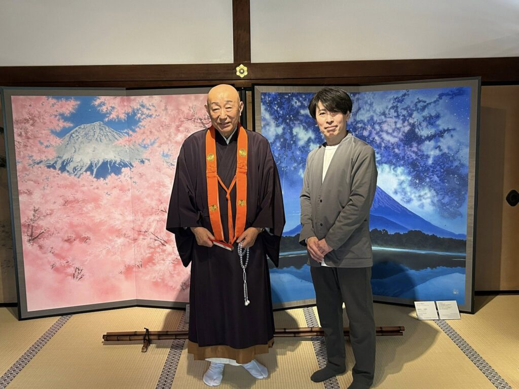 深い青で自然の根源を表現する坂本さんと、日本の豊かな自然美を細やかに描き出す髙橋さん。 異なる表現でありながら、共に「日本の自然と命」に深く向き合うお二人が、門跡様との対話を通じて、さらに素晴らしいインスピレーションを共有されました。